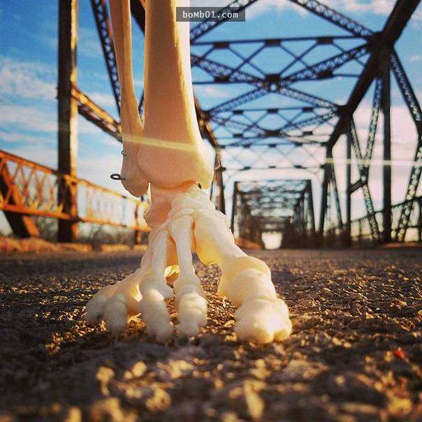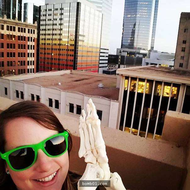 ▼從那時起,Kristi帶著自己的斷腳骷髏,開始了別樣的征程。