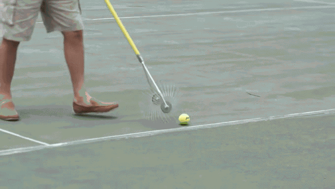 ▼網球收集器,不用彎腰就能輕鬆把網球全部收起來。