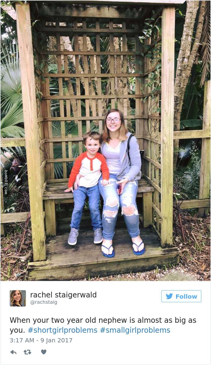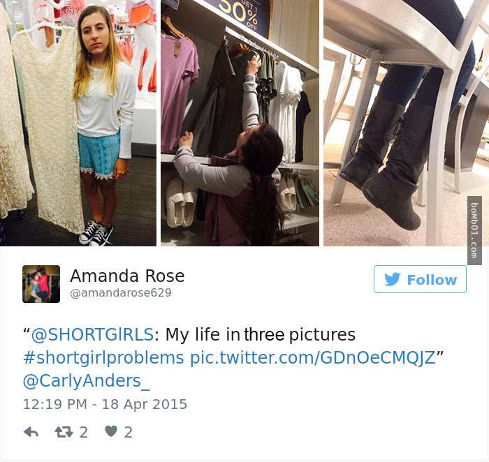 2017年01月15日生活中,長得矮的人面對的困難比高個子要多得多。他們夠不到架子上層的東西、看演唱會時總被擋住、買不到合適的褲子,每件都要修改。除了這些,他們還會遇到很多倒楣事,下面就是一些矮個子網友分享的辛酸事…