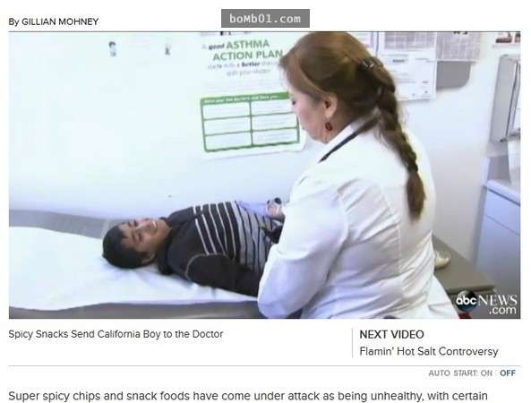 ▼來自紐約Lenox Hill 医院的急診醫師-格拉特(Dr. Glatter)指出,她平均每天都會接受超過5位因為胃炎而入院的兒童,而且絕大部分都是因為尋求辣味帶來的灼熱刺激,又或者是為了挑戰自己極限而吃下大量的辣味零食,結果最後胃痛得他們捧腹大叫,才被家長緊急送院治療。