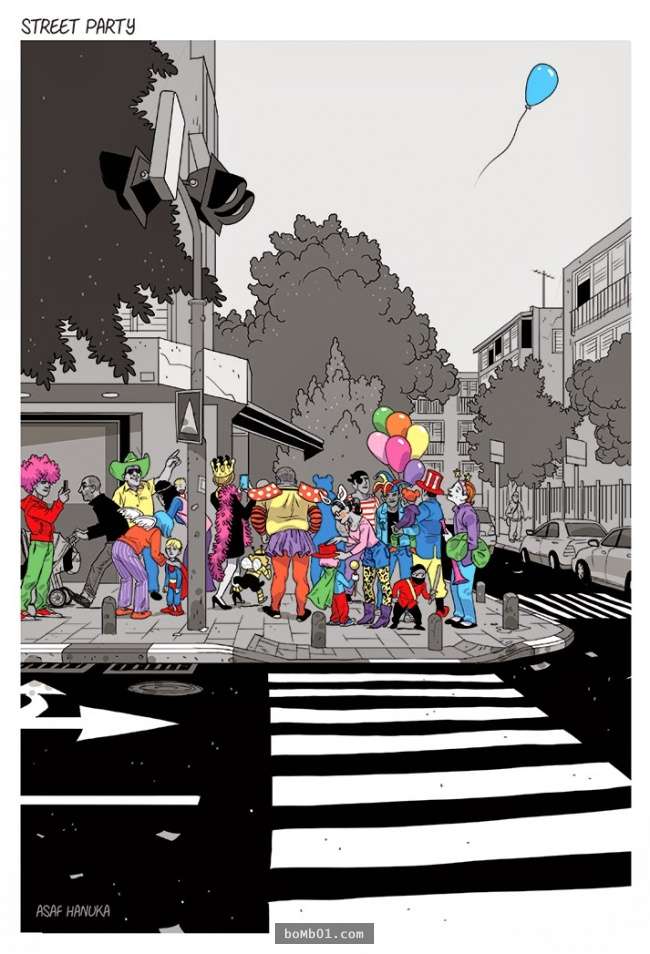 2017年01月18日Tomer Hanuka和Asaf Hanuka是以色列的一對雙胞胎插畫師。他們的作品充滿荒誕、詭異的氣氛,同時又用近乎殘酷的方式揭開了現實中人們不敢說的秘密。那些看似正常的畫面背後,有怎樣血淋淋的現實?