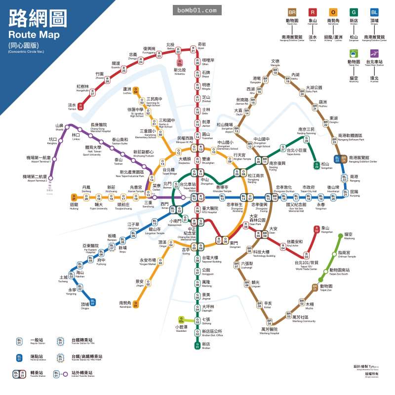 2017年01月19日台北捷運非常方便,但每次看路線圖,都有一種眼花撩亂的感覺。最近,一名網友在《PTT》的MRT版分享了一張自製的捷運路線圖。他將捷運圖畫成了同心圓狀,還使用了新版的車站編號標誌,一眼看去還以為是官方發布的。
