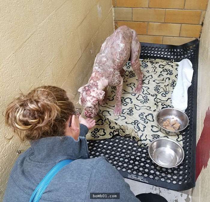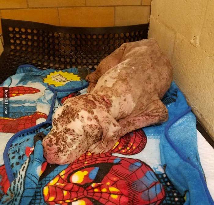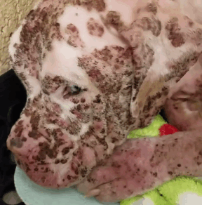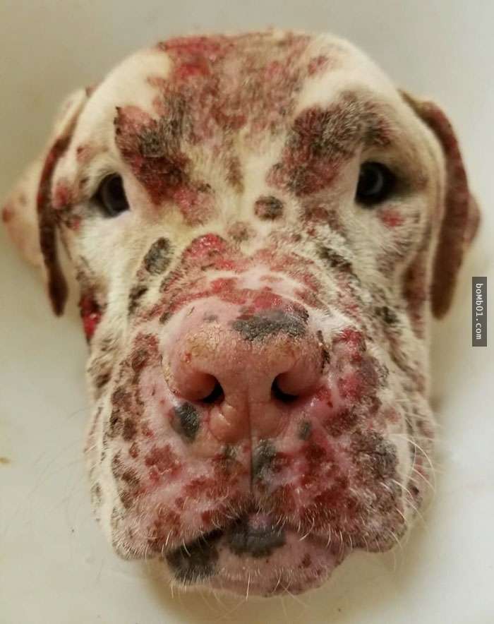 ▼Stinger被送到醫院時,情況非常糟糕。除了蜜蜂的蟄傷,還有先天性的皮膚病。
