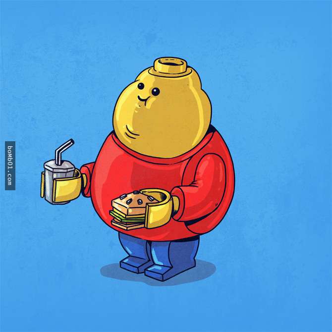 ▼11. 樂高公仔再繼續暴飲暴食下去的話,應該要換鋼鐵製的樂高積木才能撐起他的重量了。(誤)