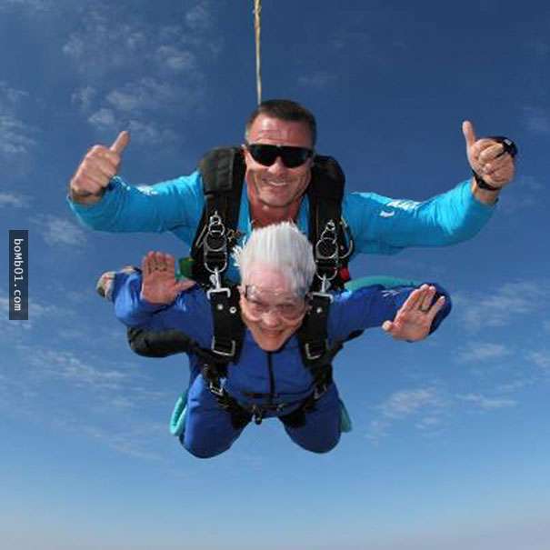 ▼21. 83歲的奶奶體驗了跳傘,她比好多年輕人大膽啊!