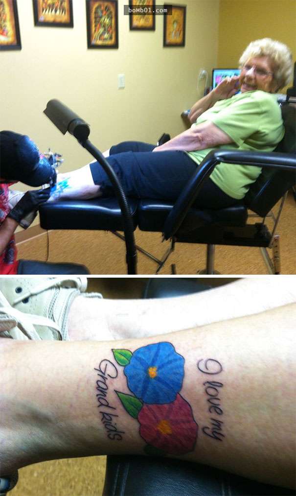 ▼19. 83歲的奶奶有了人生中第一個刺青,圖案非常美呢!