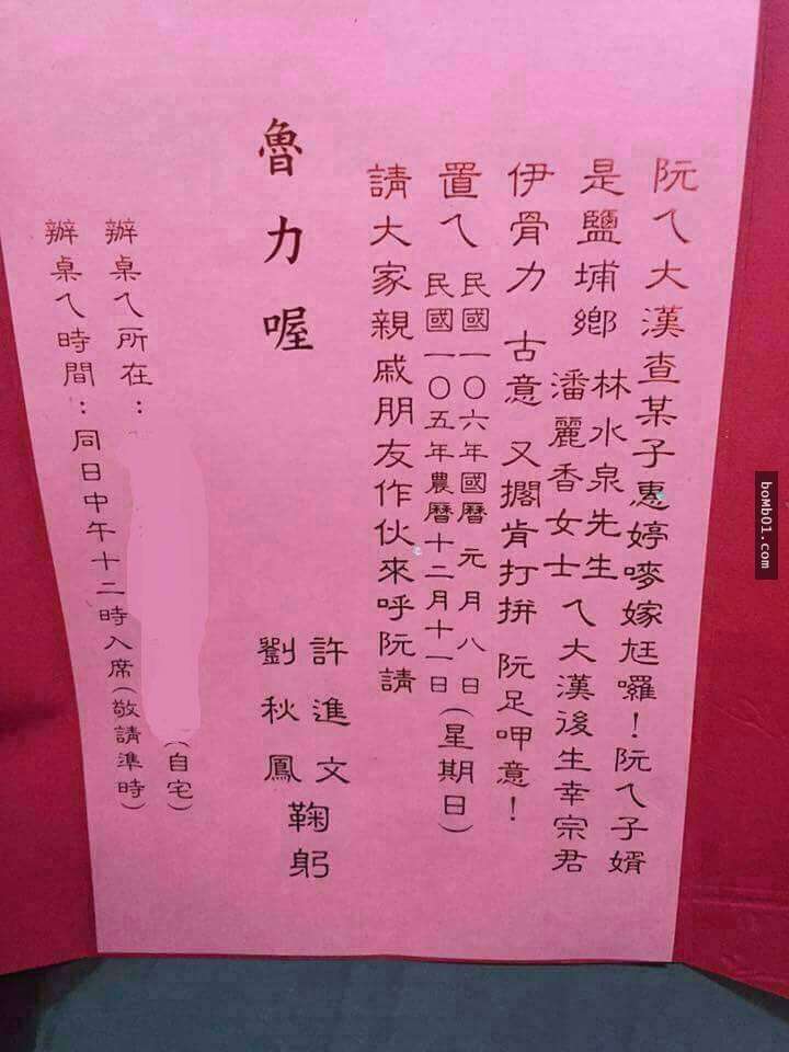 這張特別的「台語喜帖」竟然讓很多網友挫敗表示看不懂,沒在20秒內看完的人都不敢說自己會台語了!