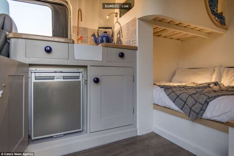 ▼Lucy提出了很多好點子,讓房車內的空間更開闊。他們在座位上花了2500英鎊(約新台幣9萬7千元),電力熱力系統花費2000英鎊(約新台幣7萬7千元),其他錢都花在了木材、配件、絕緣材料上,最後他們一共花費18000英鎊(約新台幣69.9萬千元)。