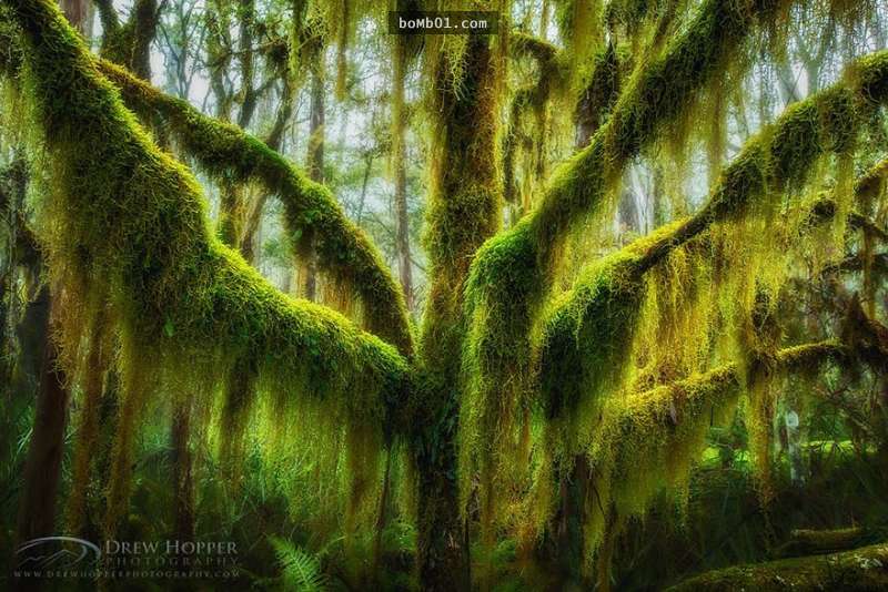 ▼美國奧勒岡州:佈滿苔蘚的山毛櫸樹