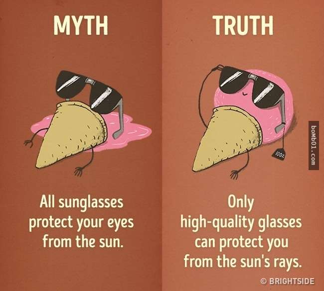 真相:只有品質好的太陽鏡才能讓你免受太陽輻射的傷害。