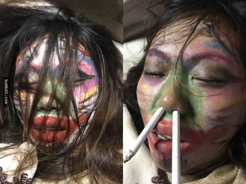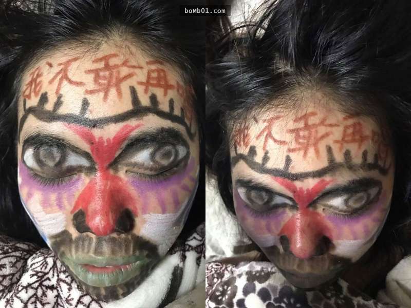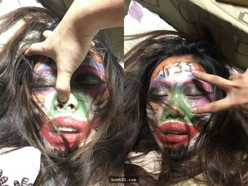▼不久前,一名男網友為了懲罰他喝得爛醉的老婆,居然趁著她醉的不省人事之際,把老婆的臉塗鴉化成了大花臉,還把老婆的各種醜照Po在網路上,超壞心的惡整讓大家都不禁擔心起「老婆醒來發現後,你還能活著嗎?」