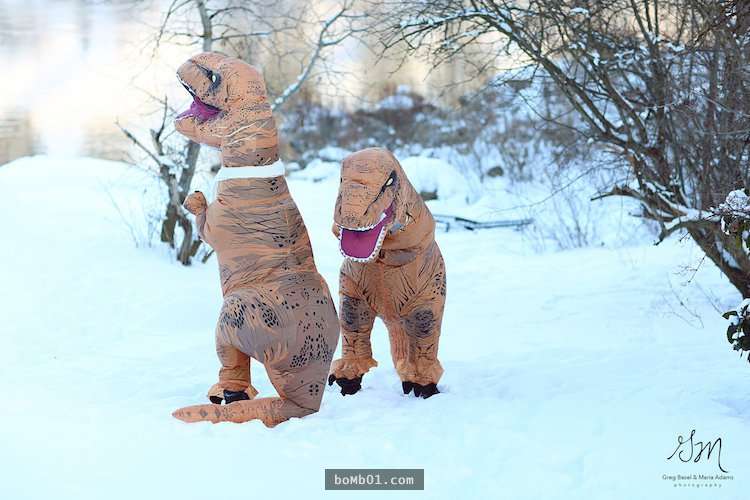 ▼恐龍裝裡的其實不是情侶,其中一位是攝影師的表妹,另一位是表妹的朋友。