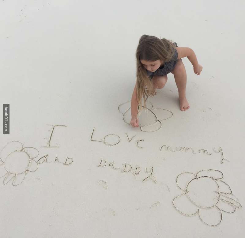 ▼哈波在家中備受寵愛,她也非常貼心,經常做讓爸爸媽媽暖心的事,之前還在沙地中寫「我愛爹地媽咪」。