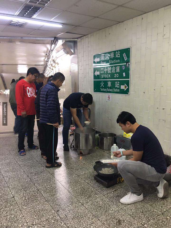 2017年01月28日過年大家除了收紅包之外,最期待的就是除夕夜晚上吃的年夜飯飯,因為總是能吃到平常沒有的好料。但是這群來自台中的好心人,卻選擇犧牲自己與家人吃年夜飯的時間,扛著瓦斯桶來到地下道,煮飯給街友們飽食一頓,這個畫面感動眾多網友,超過8萬人按讚。