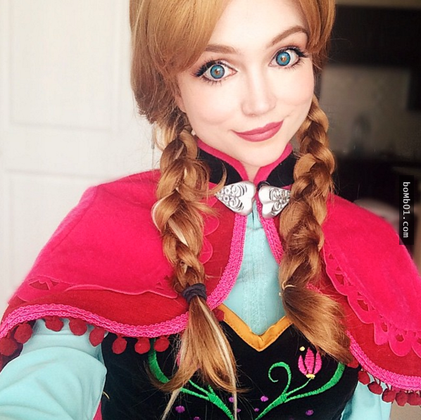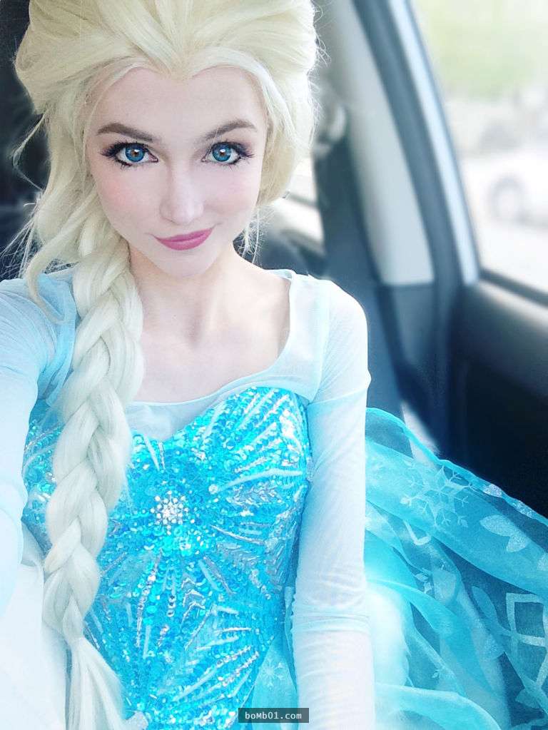▼「我扮演睡美人的時候需要修容,因為我的臉比她圓,」莎拉說著她打扮時注意的重點,「我有棕色的眼睛,所以在扮艾莎跟愛麗兒時就要戴上藍色的隱形眼鏡。」