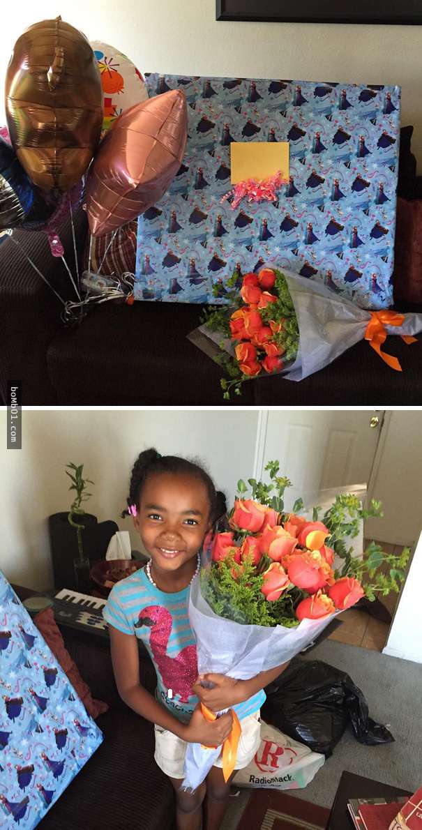 ▼爸爸給女兒送花,讓女兒知道男生怎樣對待心愛的女士。