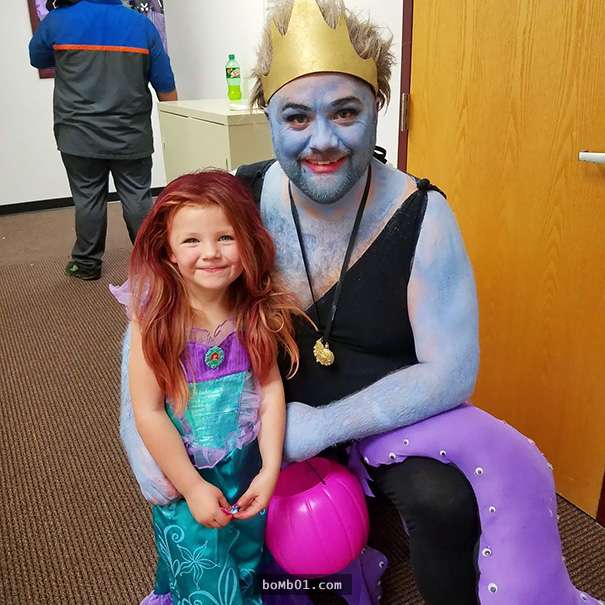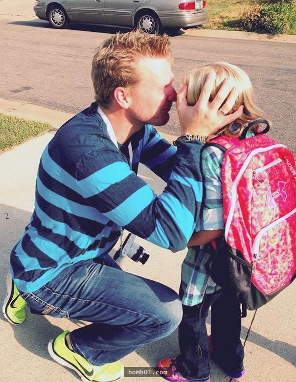 ▼這個單親爸爸有3個孩子,這是女兒第一天去幼兒園的模樣。