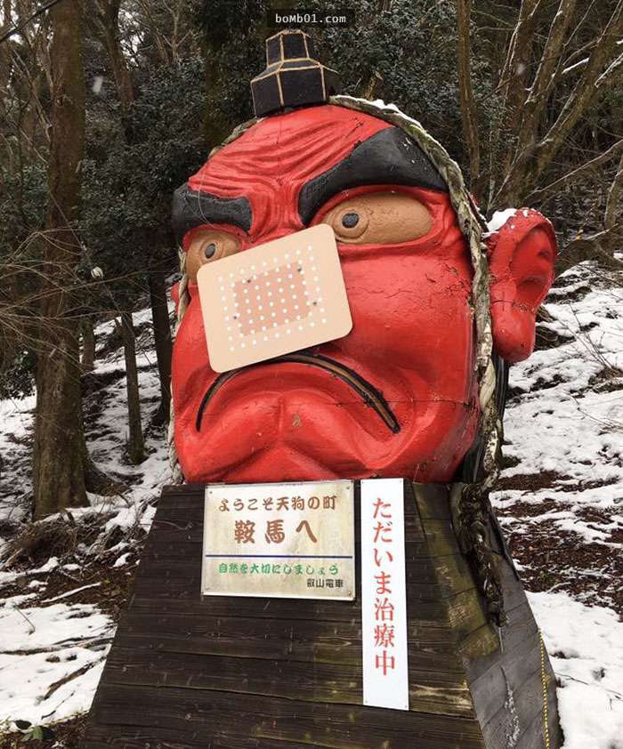 2017年02月03日冬將軍來襲,不管哪裡都冷冷冷,位於高緯度的日本大雪更是下得一點也不客氣,到處都有深深積雪。但最慘的下雪意外竟被這個位於京都神社外的「天狗」遇到,它的鼻子因大雪直接斷成兩半,而日本人對他進行的治療方式,會讓你忍不住笑噴!