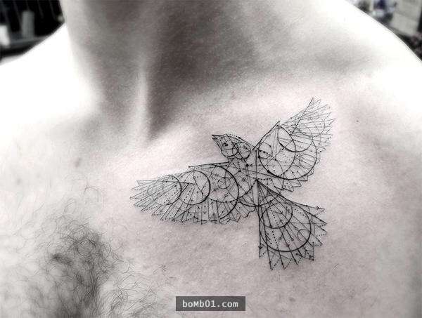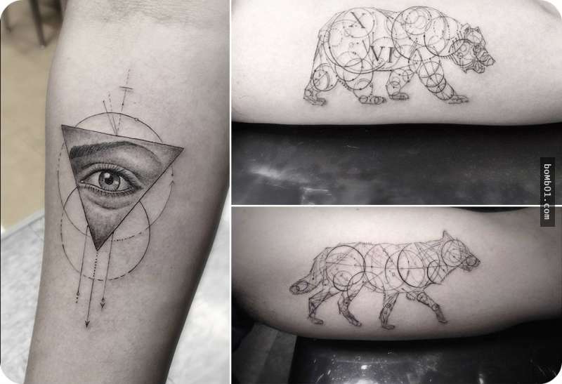▼他最擅長的就是數學、幾何、線條等極簡風刺青。