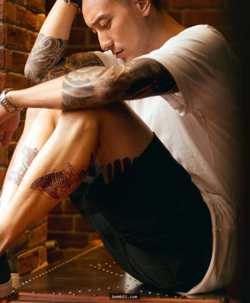 ▼王陽明腿上的這隻幾何鯨鯊也是出自Dr. Woo之手。