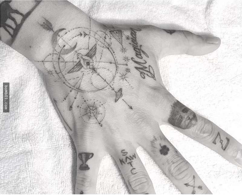 ▼他所創作的刺青都是具有極細線條的「單針刺青」,當用較粗的針一下就刺出粗線條時,單針必須要同一處刺三次才能完成。但也因為堅持使用單針,所以才能刻畫出更細膩的細節。這樣的極簡風刺青一下就吸引了許多名人洶湧而至,就算要排隊預約也不在乎。