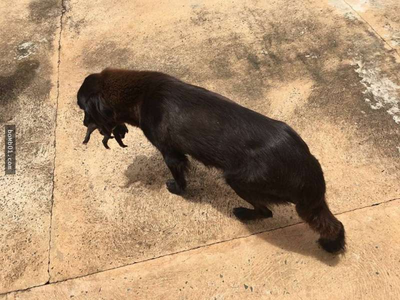 2017年02月08日不久前,巴西聖保羅州新奧里藏特的一名警員出門時,看見鄰居家的狗狗在垃圾堆裡扒來扒去。他以為狗狗肚子餓,在找東西吃,所以沒有在意。不久後他回來,竟看到狗狗嘴巴裡叼著一個黑漆漆的東西。