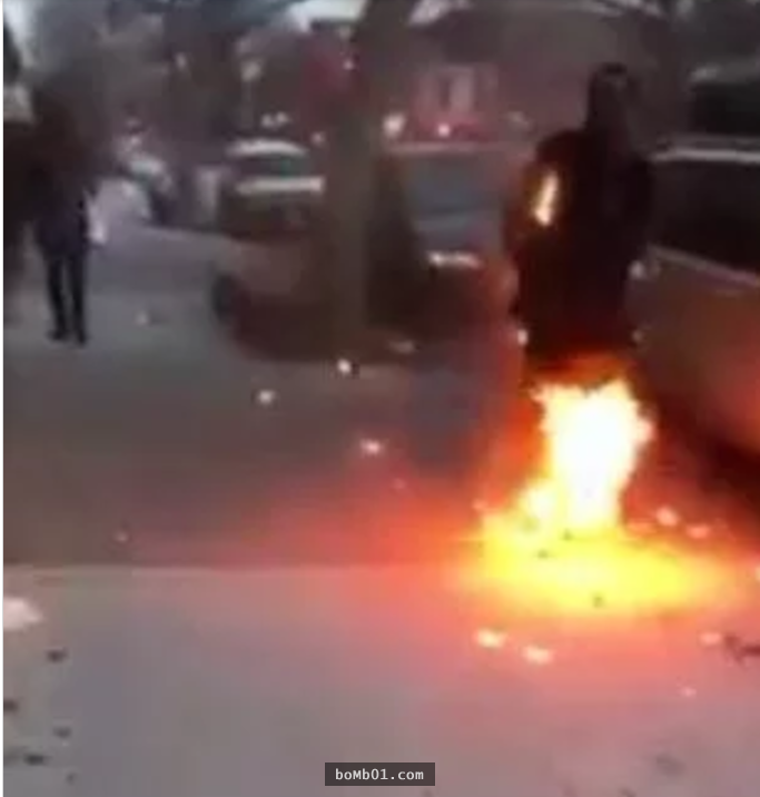 ▼Ziearre立刻下車過去查看,短短幾秒鐘的時間,那名男子身上的小火苗已經變成火球。