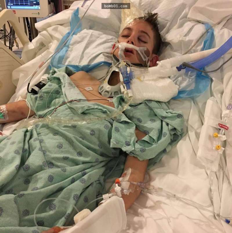 ▼亨利的母親說,他醒來後拔管所說的第一句話就是:「我餓了!」雖然這三個字極其普通,但這樣理所當然的語句在現今卻非常珍貴,因為她本來有想過可能再也聽不到兒子說這句話了。