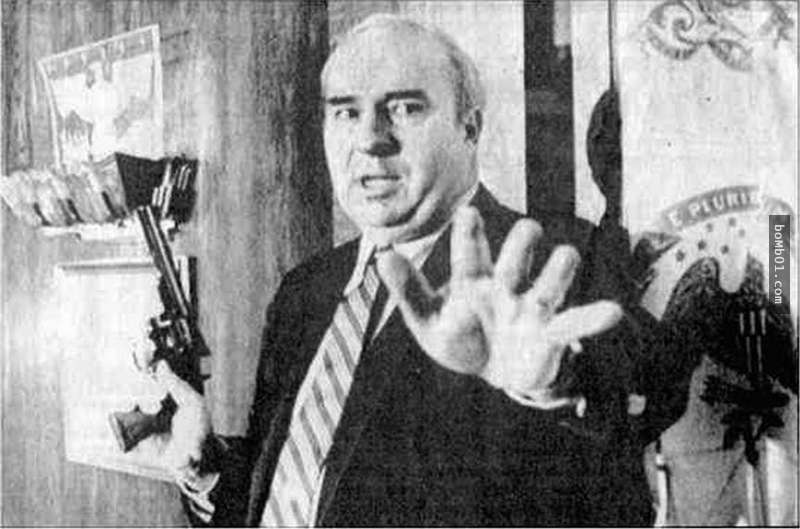 ▼14.Budd Dwyer死前拍攝的最後一張照片。他是美國賓州的財務官,當年賓州許多官員被指控貪污,他也是其中之一,但他否認自己涉案。要被法院宣判是否有罪的前一天,他召開了一場直播記者會,抨擊司法系統、反對死刑,然後拿出遺書、器官捐贈簽署書等等,最後拿出一把槍飲彈自盡。