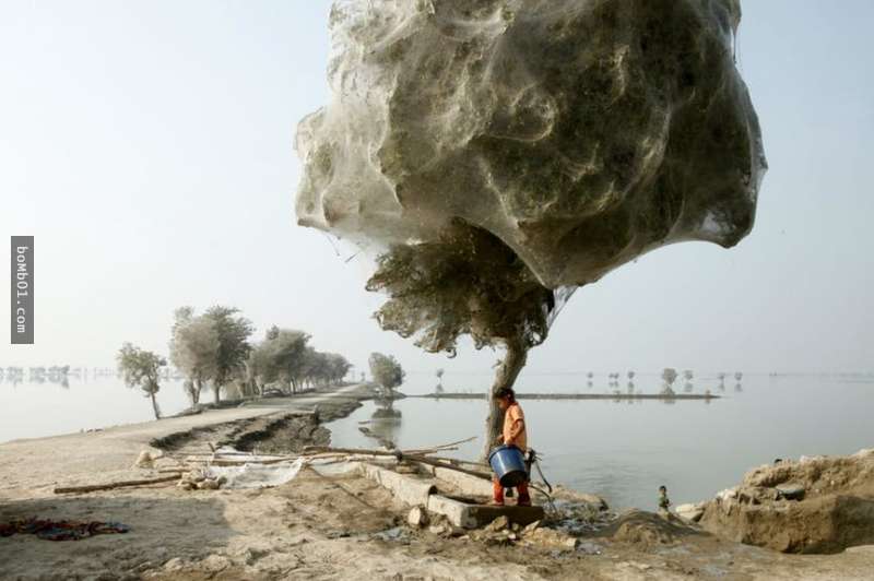 ▼3.被蜘蛛佔領的數:巴勒斯坦遭遇嚴重水患,蜘蛛為了避水,全都爬到了樹上。