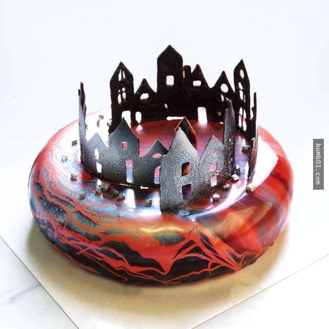 ▼大家還記得早前夯爆全球的「鏡面蛋糕」嗎?瑪麗除了把各式各樣的蛋糕製成平滑、透亮的「鏡面」效果以外,還會在上面添加一些可食用的建築物作為裝飾,打造一個專屬於蛋糕上的小城市。