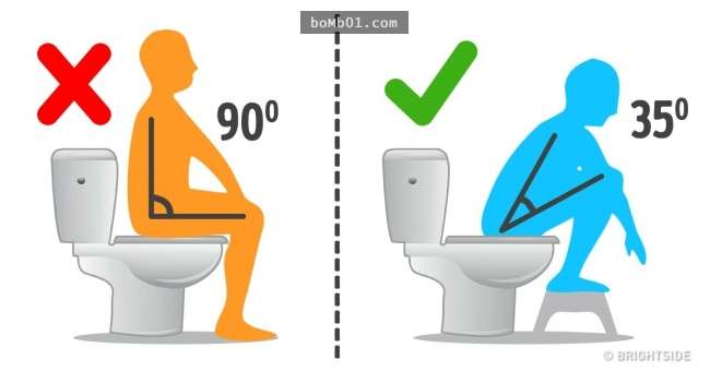 ▼10.如果你有便秘的問題,不妨試試看在上廁所的時候拿一個小板凳墊在腳下,再將身體微微往前傾,呈現約35度角的角度可以讓排便更順暢!