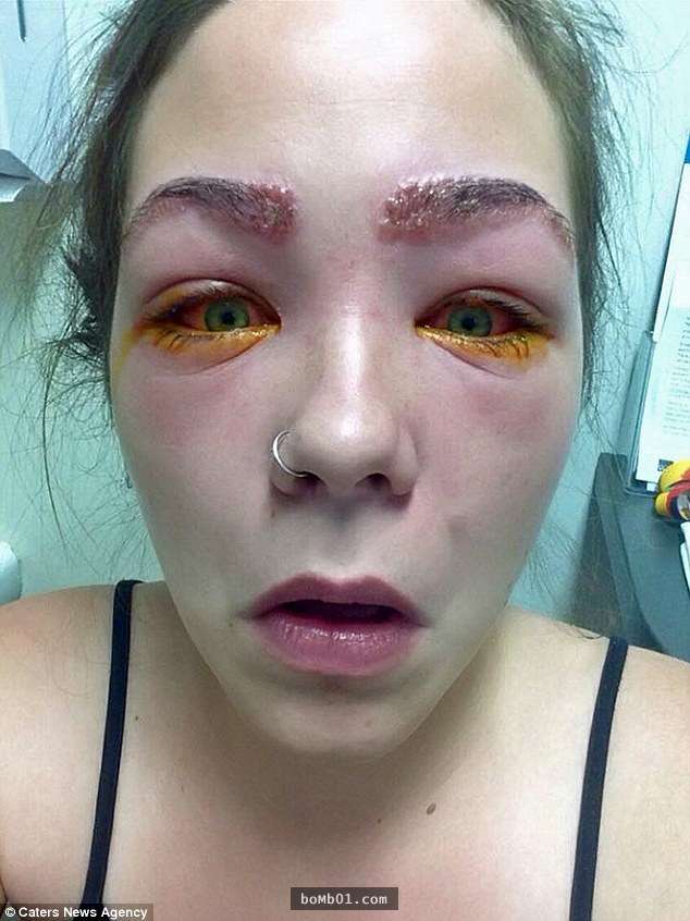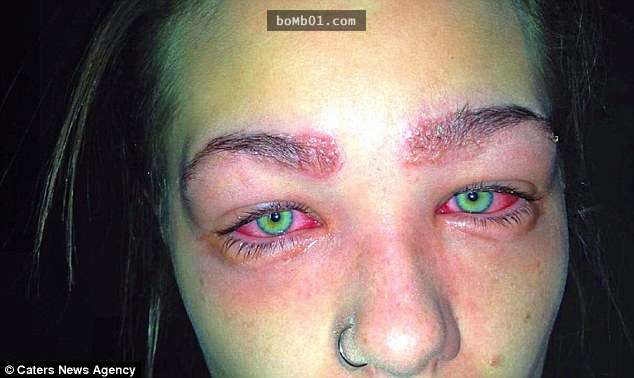 ▼她的眉毛很癢,而且伴有強烈的刺痛感。第二天醒來時,Tylah的眼睛腫的像氣球一樣,快要炸開。那種感覺就像沙子進了眼睛,卻始終弄不出來,眉毛也像刀片在刮一樣,非常痛。