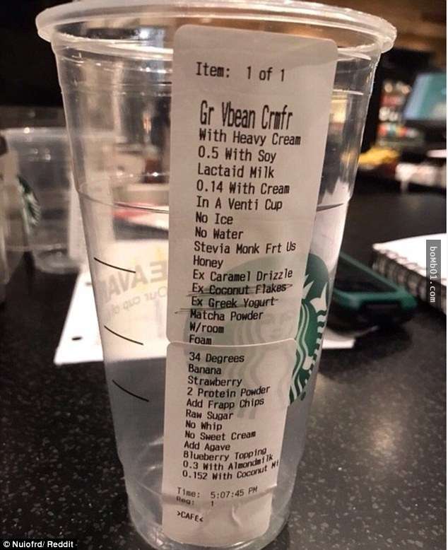 2017年02月16日最近,一張恐怖的星巴克「客製訂單」紅遍網路。那名美國客人點了一杯星冰樂,卻指定添加19種不同的配料,溫度必須達到16度。除了之外還有很多要求,零零總總一共27個!