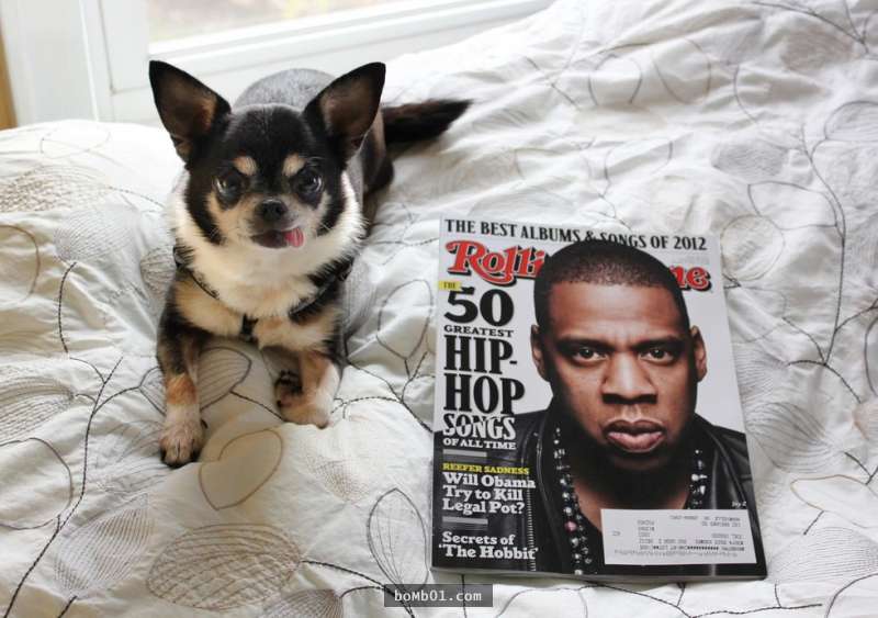 ▼Hayes夫妻心想,既然狗狗看似沒有要離開的意思,那牠就需要一個名字,Heather的丈夫從家裡一本雜誌封面得到了靈感,決定將吉娃娃取名為Jay-Z。