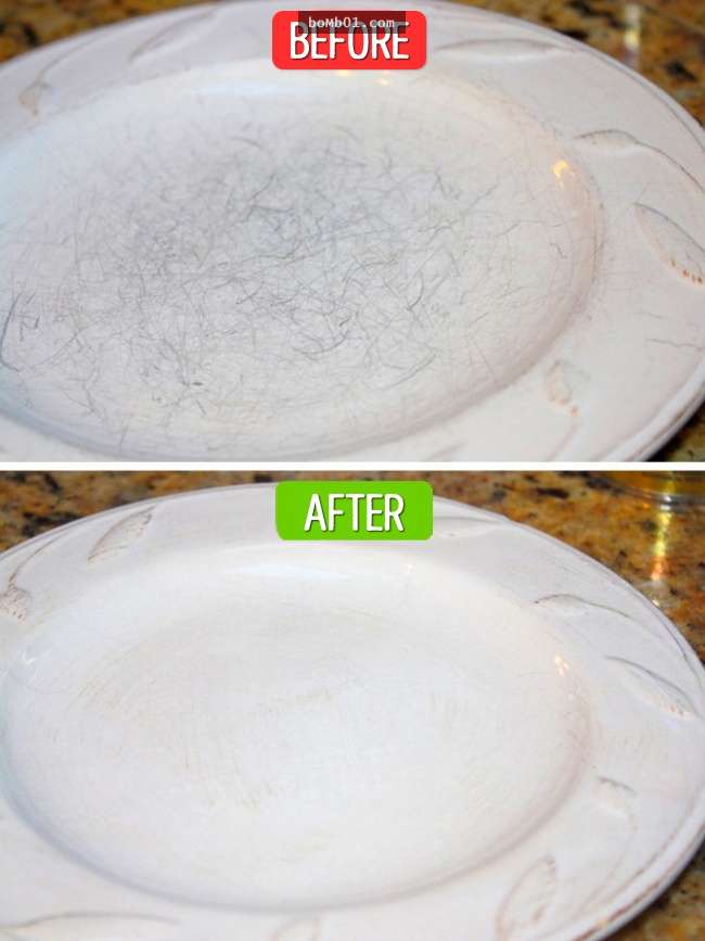 盤子用久了總是會出現刮痕,只要用市販的陶瓷打亮劑清洗就可以了。