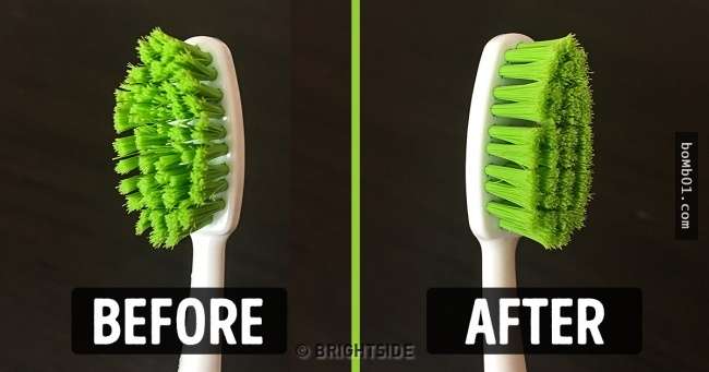 牙刷的刷毛彎曲時,只要將牙刷泡在熱水中轉一轉就可以了!