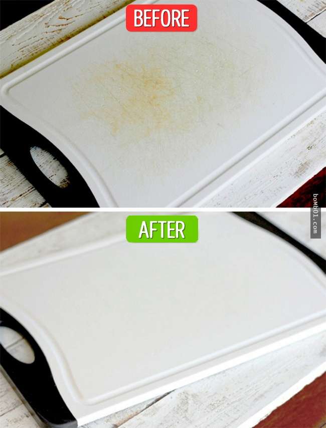 使用檸檬汁與鹽巴的混合液體清洗就能將沾板上的髒污洗乾淨。