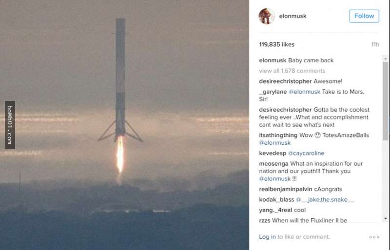 ▼回收成功後,SpaceX的CEO Elon Musk在社群網站表示:「寶寶回來了」。