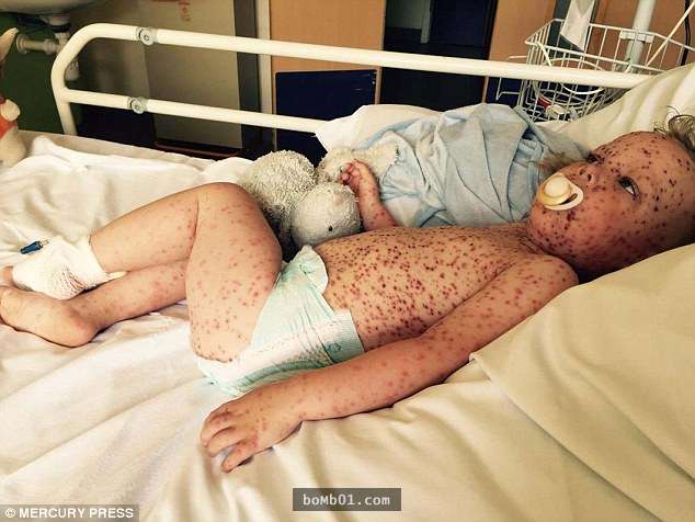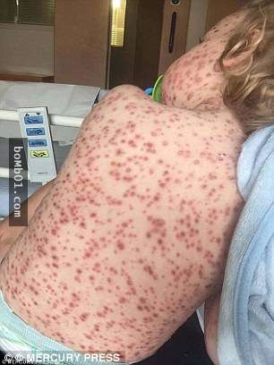 ▼後來Jasper的情況持續惡化,用了抗生素和口服抗感染藥物也不見好轉,還發起高燒。Sarah將他帶到醫院急診室,醫生們都被嚇了一跳,立刻幫他打靜脈滴注、抗病毒治療、抗生素還有嗎啡,他在醫院住了5天才逐漸好轉。
