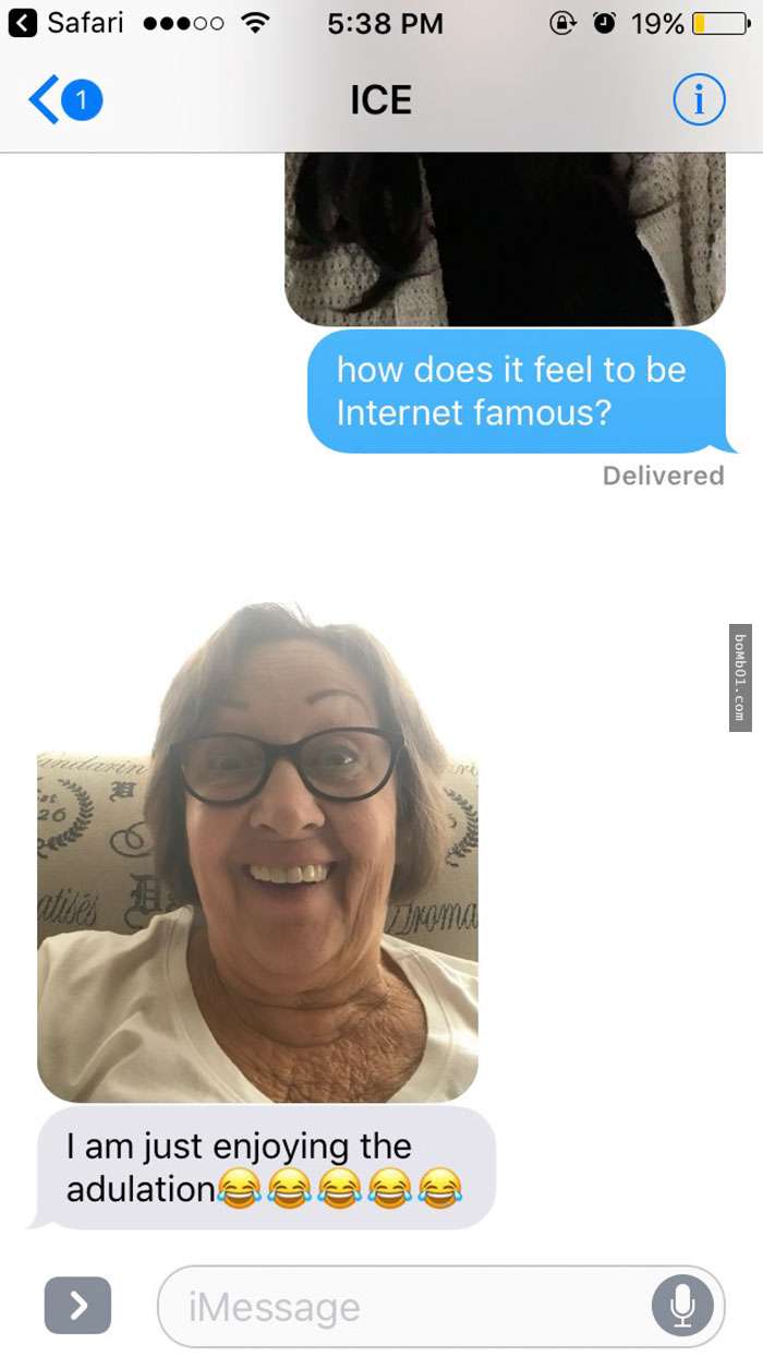 ▼​Sierra問奶奶: 「成為網紅的感覺怎麼樣?」熱愛自拍的奶奶傳來一張開心的照片,表示:「我超享受這些誇讚!」