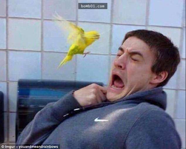 ▼小鳥只是想和他近距離接觸,他卻被嚇到了。