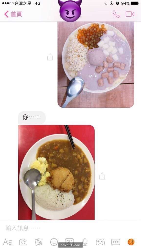 ▼結果她萬萬沒有想到的是,男友傳回了一張自己吃的咖喱飯照片給原Po,而且最神奇的是,雖然倆人吃的食物完全不同,但是餐點的擺盤居然超級神似,倆人心有靈犀般的默契當下就讓原Po甜蜜爆笑了出來!