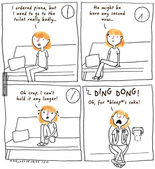 ▼16.Marloes:我點了披薩外賣,但真的好想去廁所。他可能馬上就到了……天哪,忍不住了!