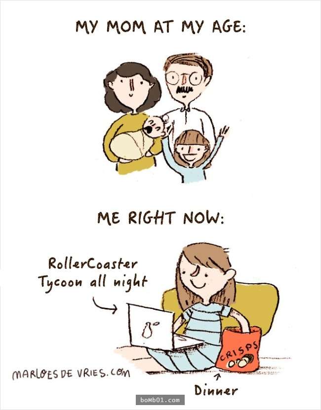 ▼1.爸媽在我這個年紀已經有了孩子,我卻還在吃著洋芋片通宵看劇。