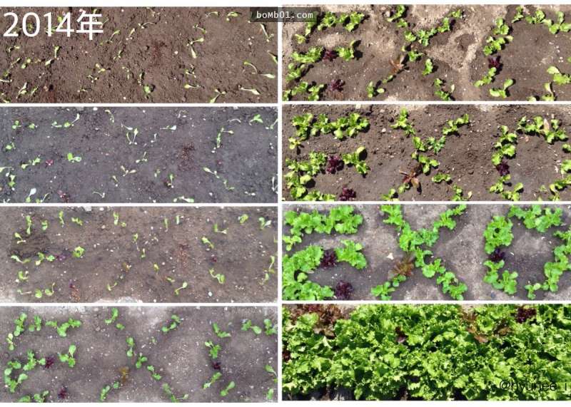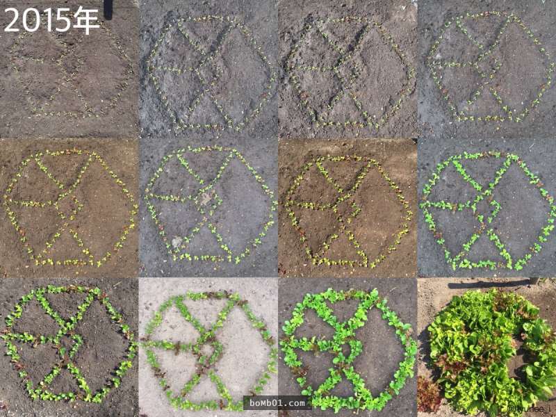 ▼她在2014年就在自家的田地中用種子排出EXO的字體,經過了幾年後EXO變得越來越明顯~ 不過到了最後似乎長得太茂密認不出來是什麼了XD