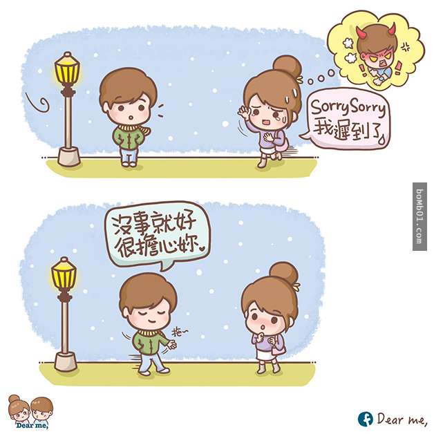 ▼冬天裡傻傻站著等遲到的你,卻絲毫不會抱怨只有擔心。