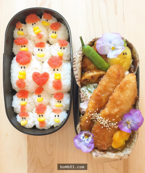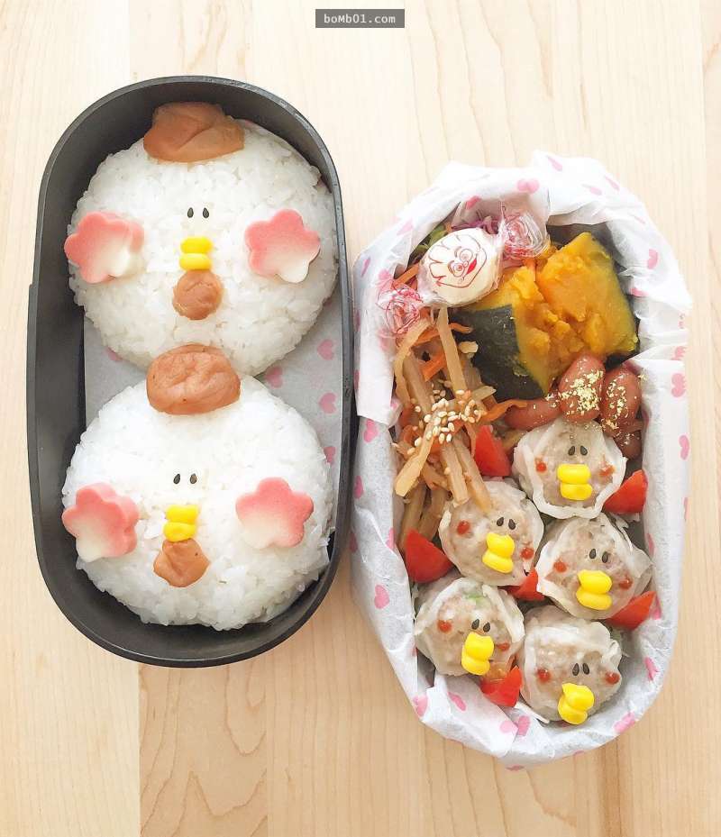 ▼這位名為「ぺろり」的便當達人在IG上相當有名氣,因為她經常都會把自己做的卡通便當拍照Po到網上。而且有趣的是,這位人妻還非常喜歡用「雞」作為她的便當題材,把飯糰捏成一隻隻的肥雞造型,再搭配五官等小細節,立馬就把普普的便當變身趣味滿滿的料理了。