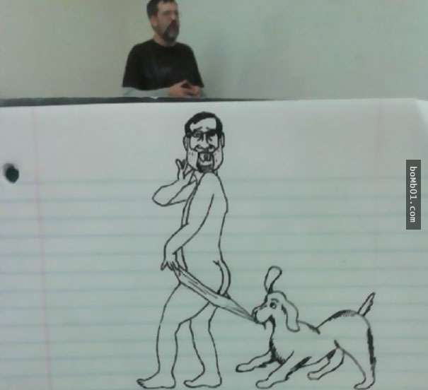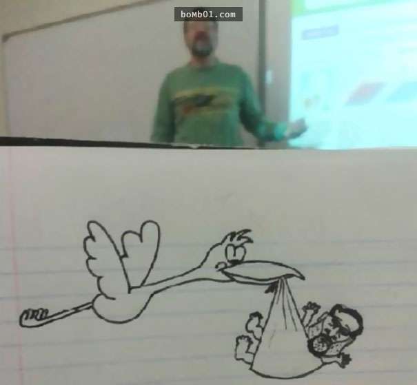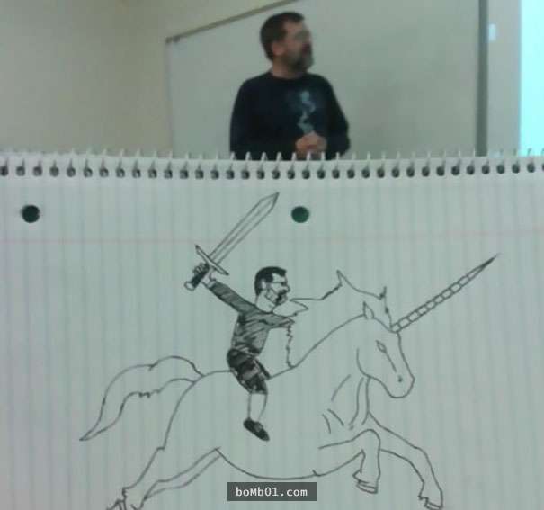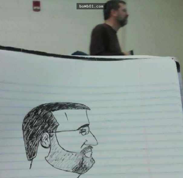 這個上課覺得很無聊的學生一整個學期都在偷畫教授,越畫越有梗的圖畫絕對不可以被教授發現啊!