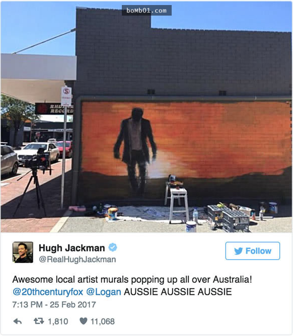 ▼這已經不是兩人第一次隔空調侃,不久前,Hugh Jackman在澳洲看到了《羅根》的壁畫,忍不住分享到網路上。